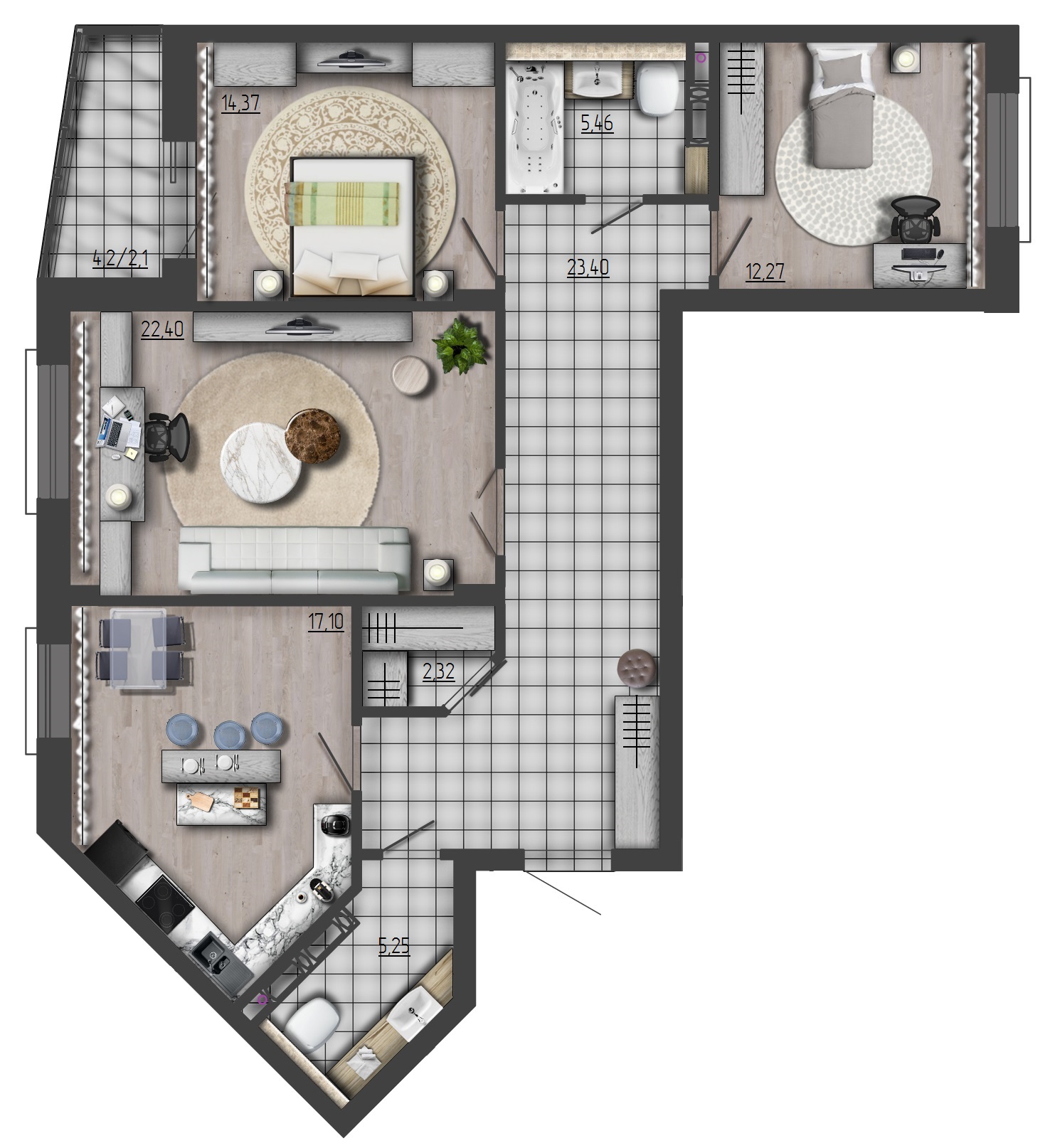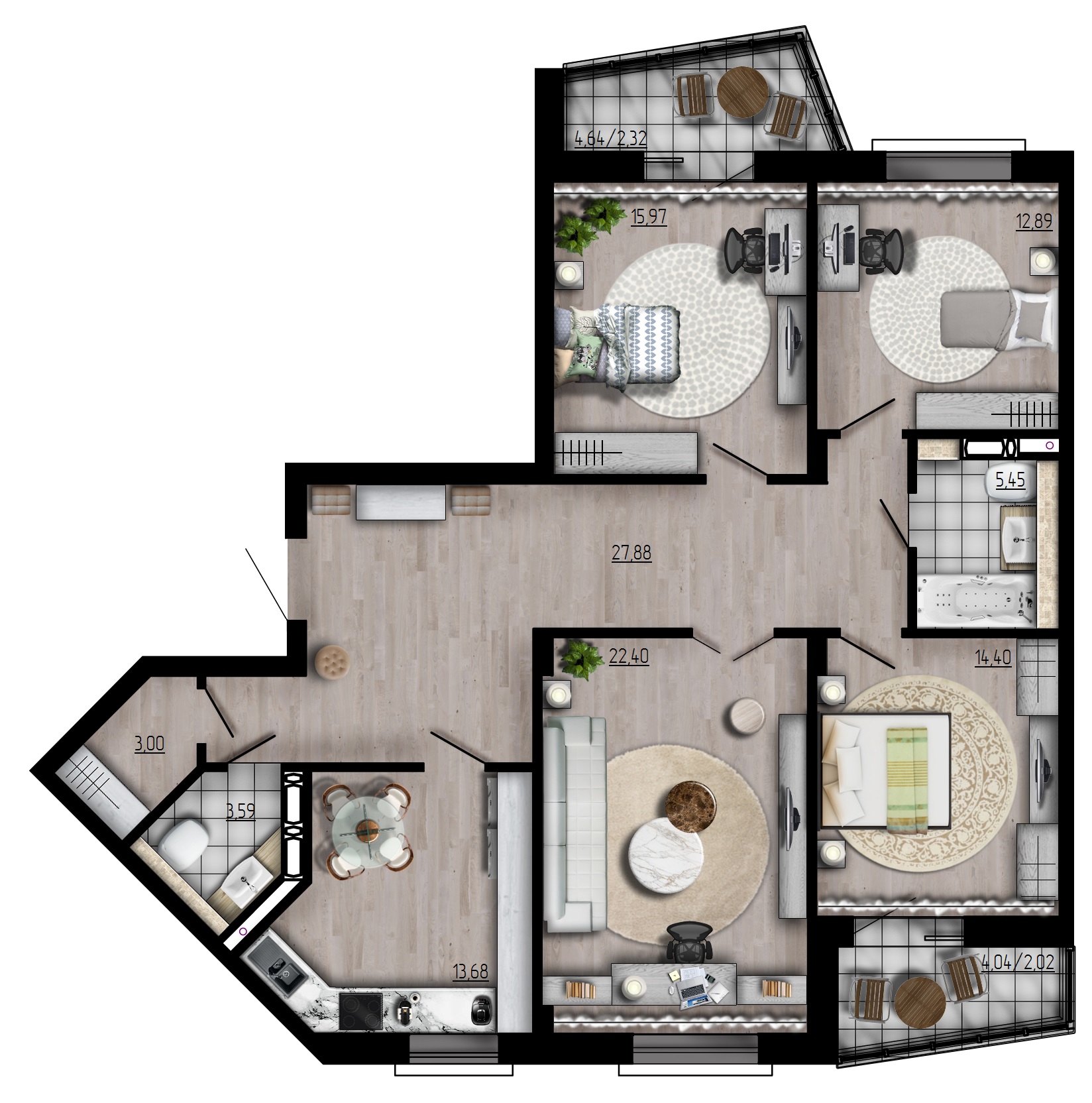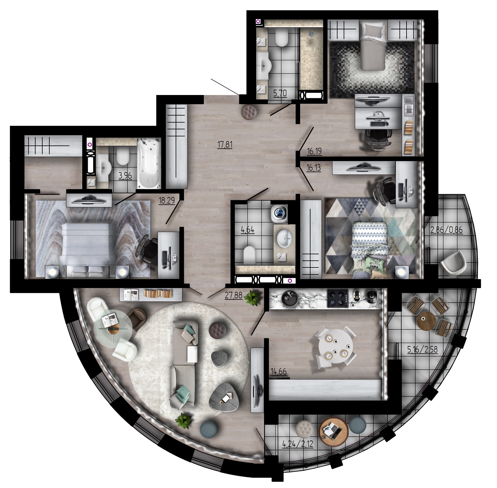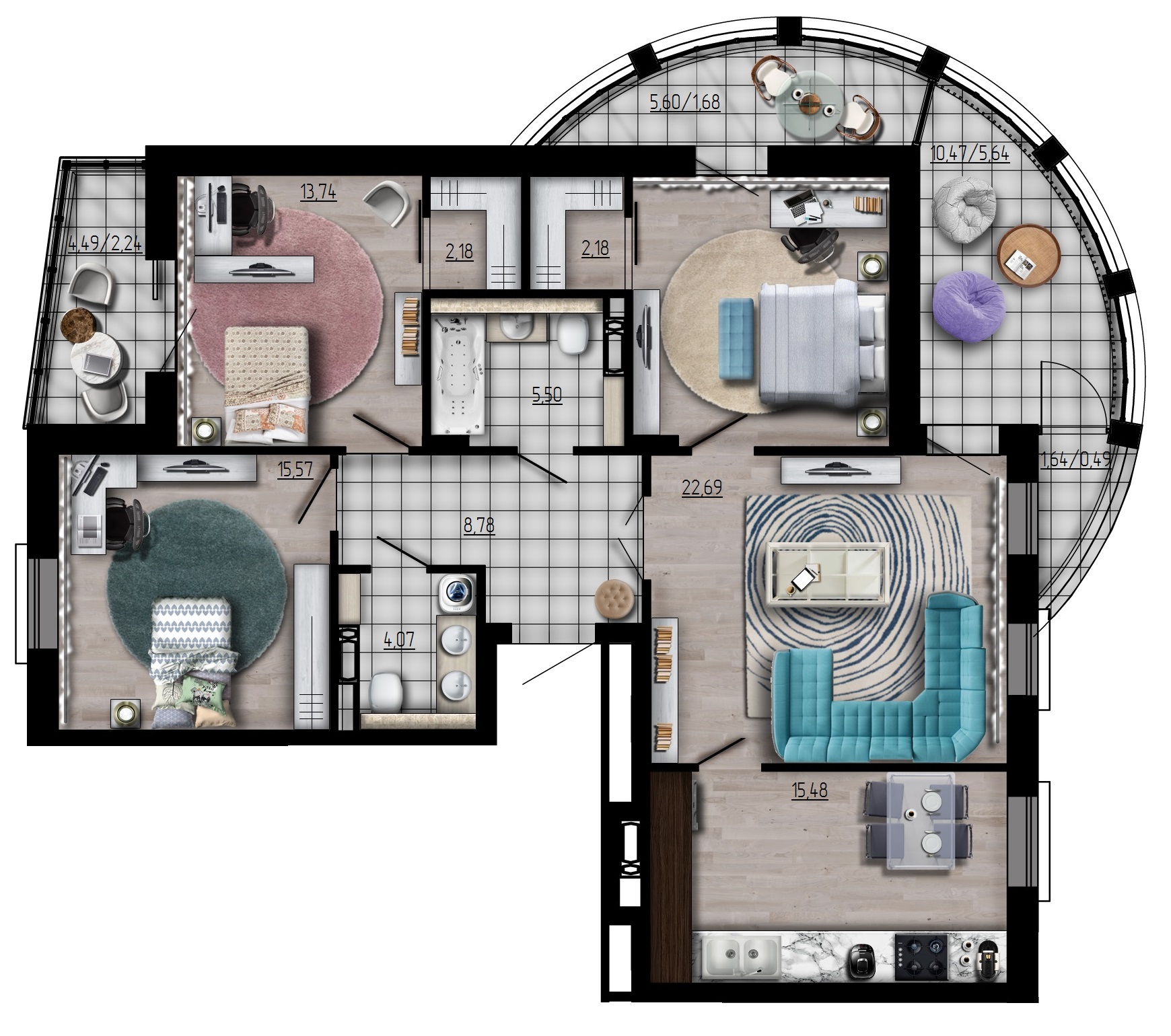 - Квартиры от 34,85 до 130,82 м²;